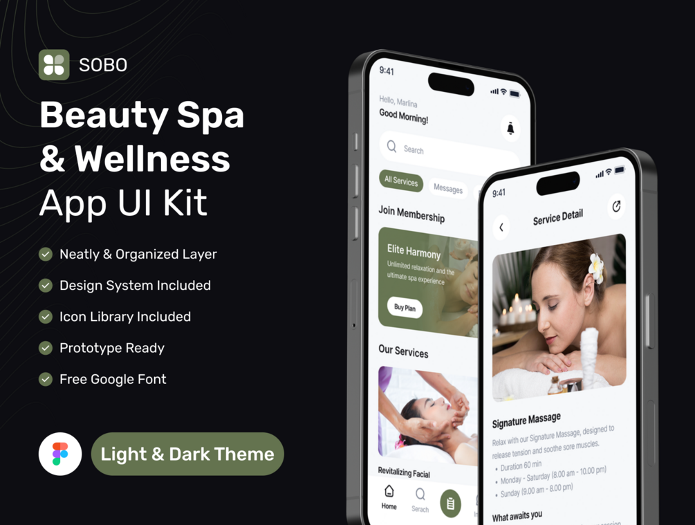 ☘️ SOBO - Beauty & Spa Wellness Mobile App UI Kit
